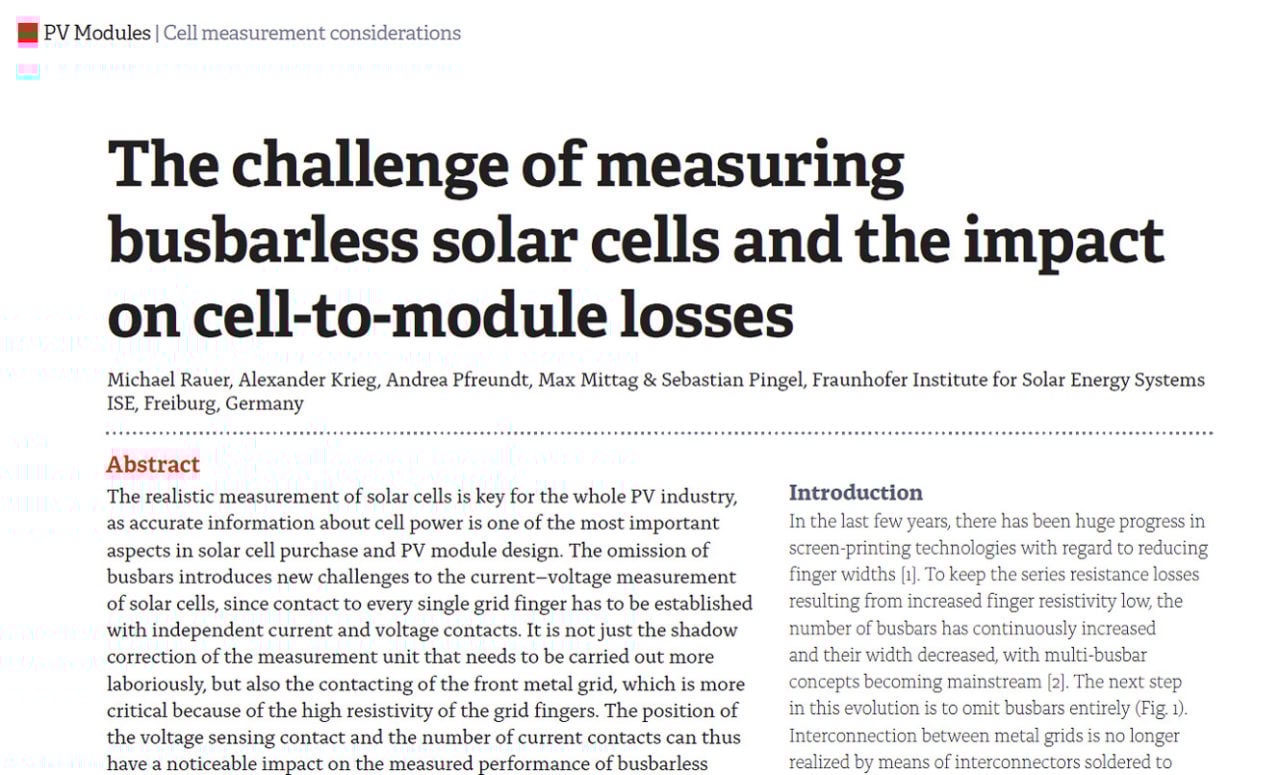 The realistic measurement of solar cells is key for the whole PV industry, as accurate information about cell power is one of the most important aspects in solar cell purchase and PV module design.
