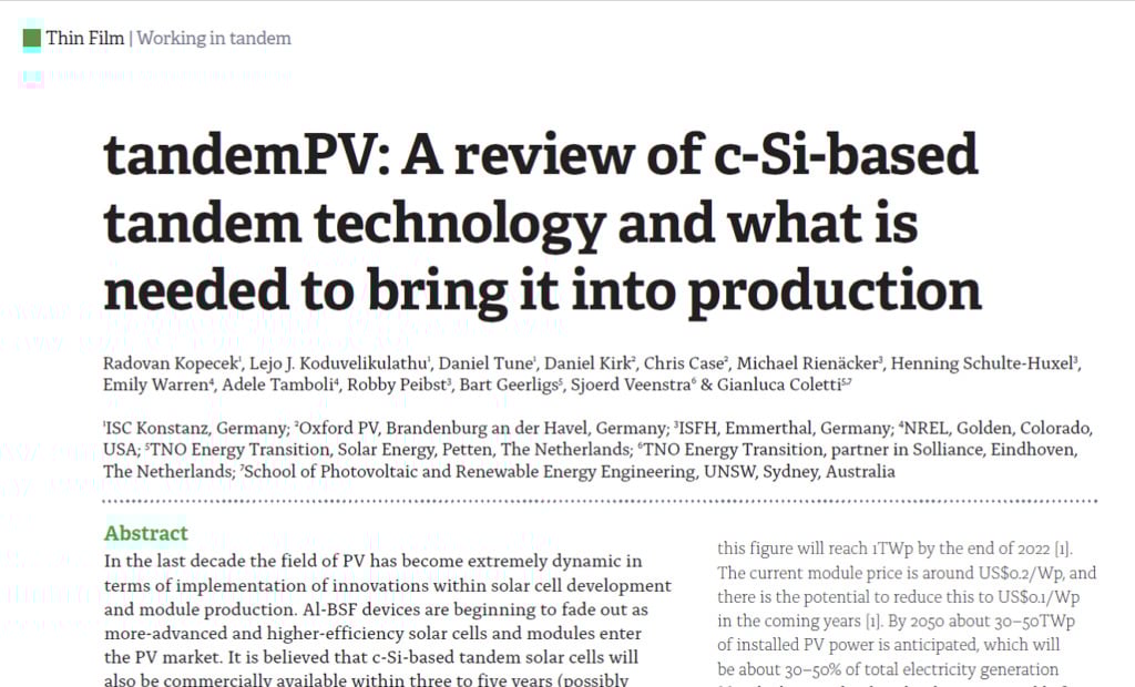tandemPV: A review of c-Si-based tandem technology and what is needed to bring it into production