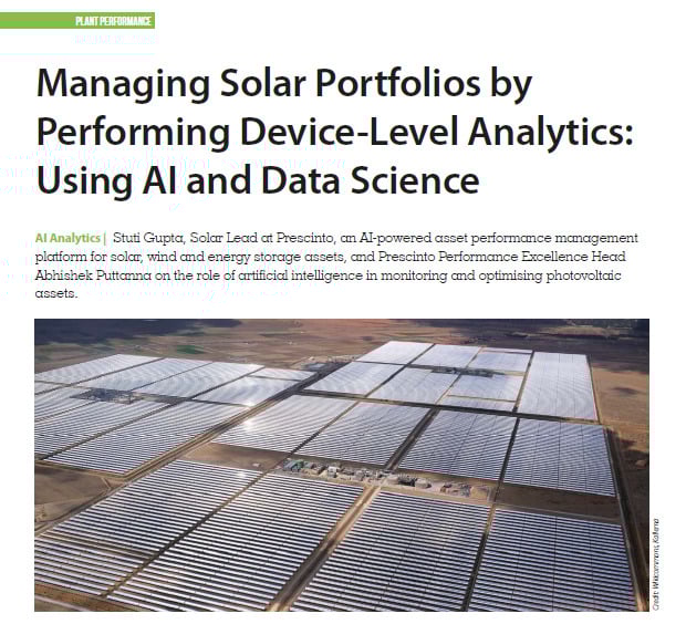 Stuti Gupta, Solar Lead at Prescinto, an AI-powered asset performance management platform for solar, wind and energy storage assets, and Prescinto Performance Excellence Head Abhishek Puttanna on the role of artificial intelligence in monitoring and optimising photovoltaic assets.