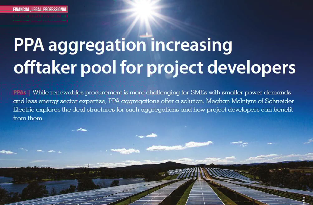 While renewables procurement is more challenging for SMEs with smaller power demands and less energy sector expertise, PPA aggregations offer a solution. Meghan McIntyre of Schneider Electric explores the deal structures for such aggregations and how project developers can benefit from them.